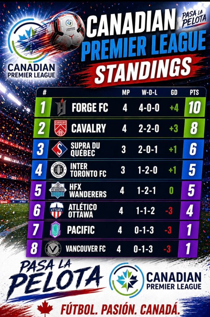 The Canadian Premier League is shaping up to be one of the most competitive seasons yet. With Forge FC leading the charge and Inter Toronto FC emerging as a team to watch, fans can expect drama, intensity, and high-quality football in the weeks ahead.
